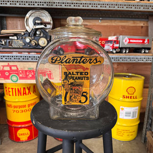The jar has the glass peanut on top and the word ‘PLANTERS’ embossed in the glass at the bottom